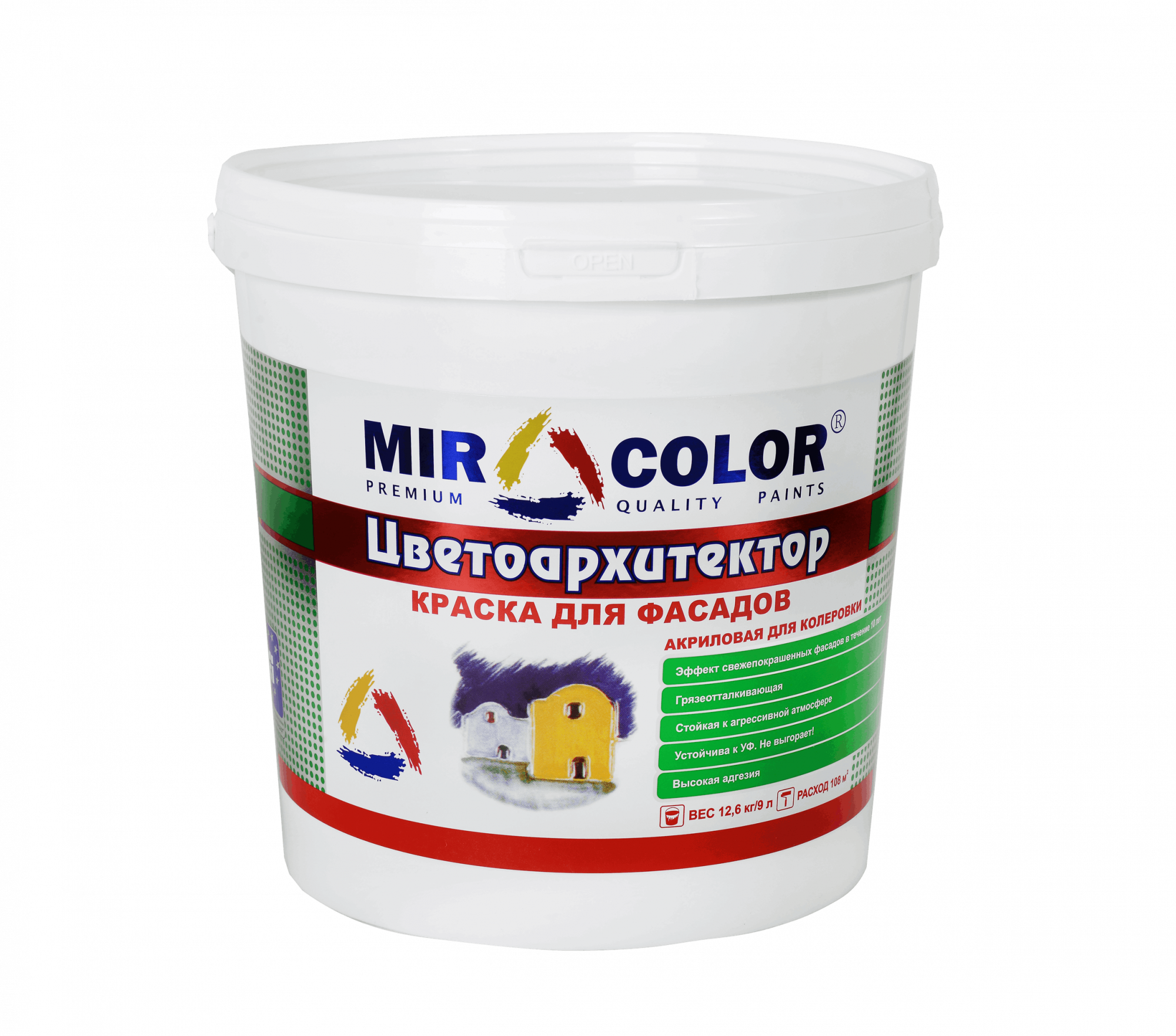 Фасадная, атмосферостойкая, долговечная, акриловая краска.
